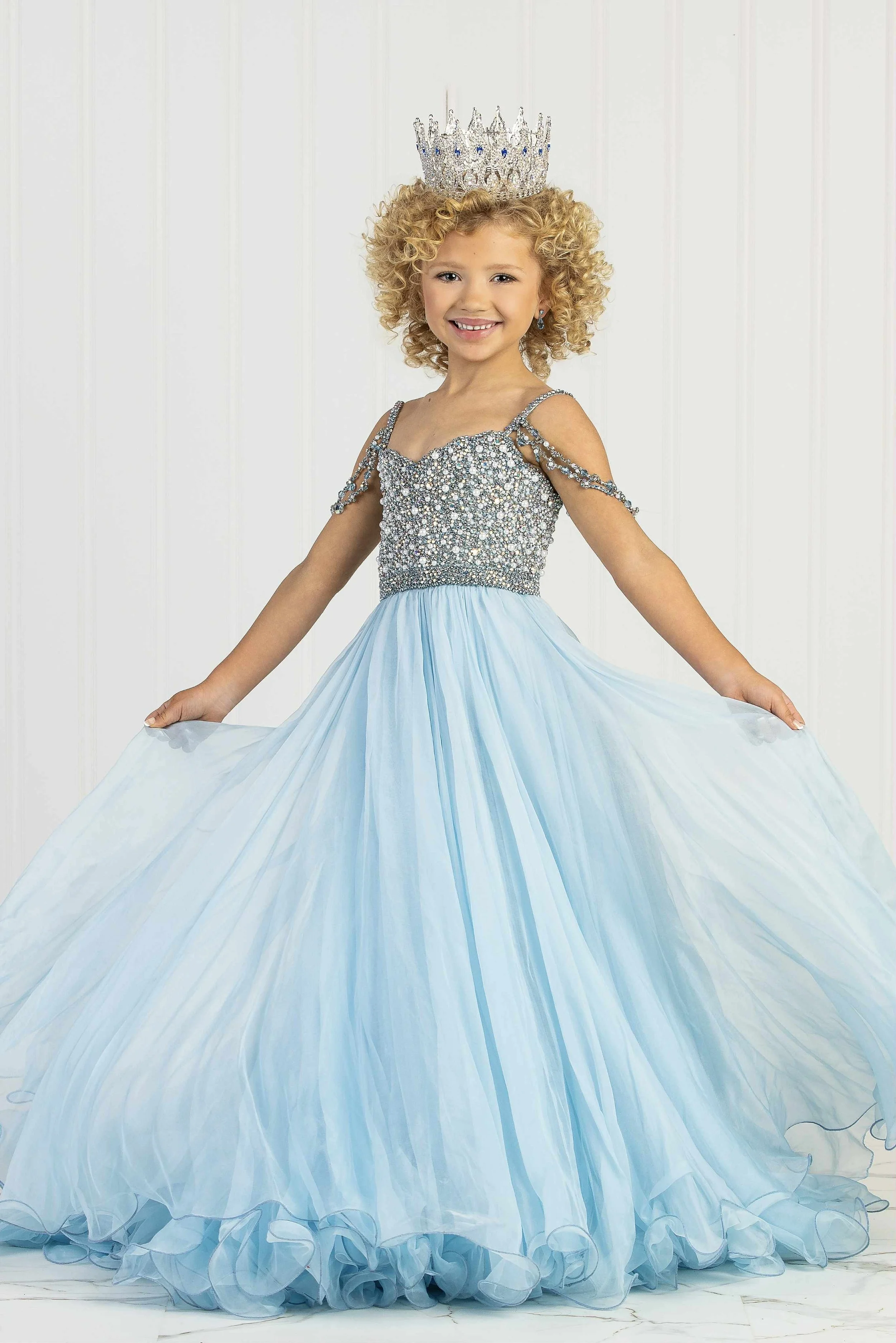 Step into a world of sparkle and shine! Our pageant gown collection is filled with magical moments—think ruffles, rhinestones, and runway-ready styles for every budget. Whether she’s a tiny tot in 18M or a pageant pro in size 12, we’ve got the perfect dress to make her feel like royalty. From classic elegance to bold and fun, our gowns are ready to dazzle on stage—and they’re just waiting to be twirled in!